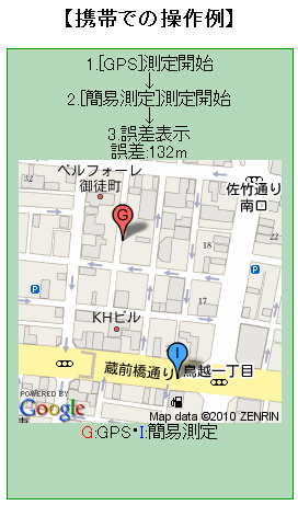 携帯電話の位置測定でGPSと簡易測定(基地局測定)でどれくらい誤差があるか測定します。