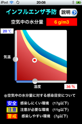 温度と相対湿度の値から絶対湿度を計算し、季節性インフルエンザウイルスの環境による感染レベルをグラフで表示します。